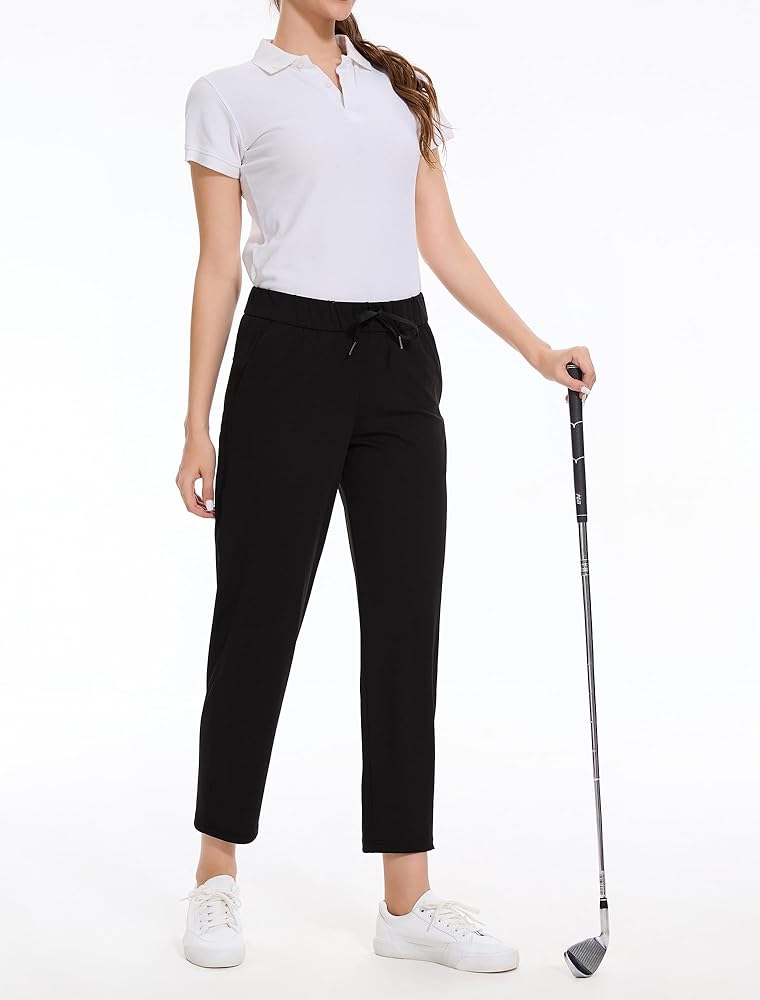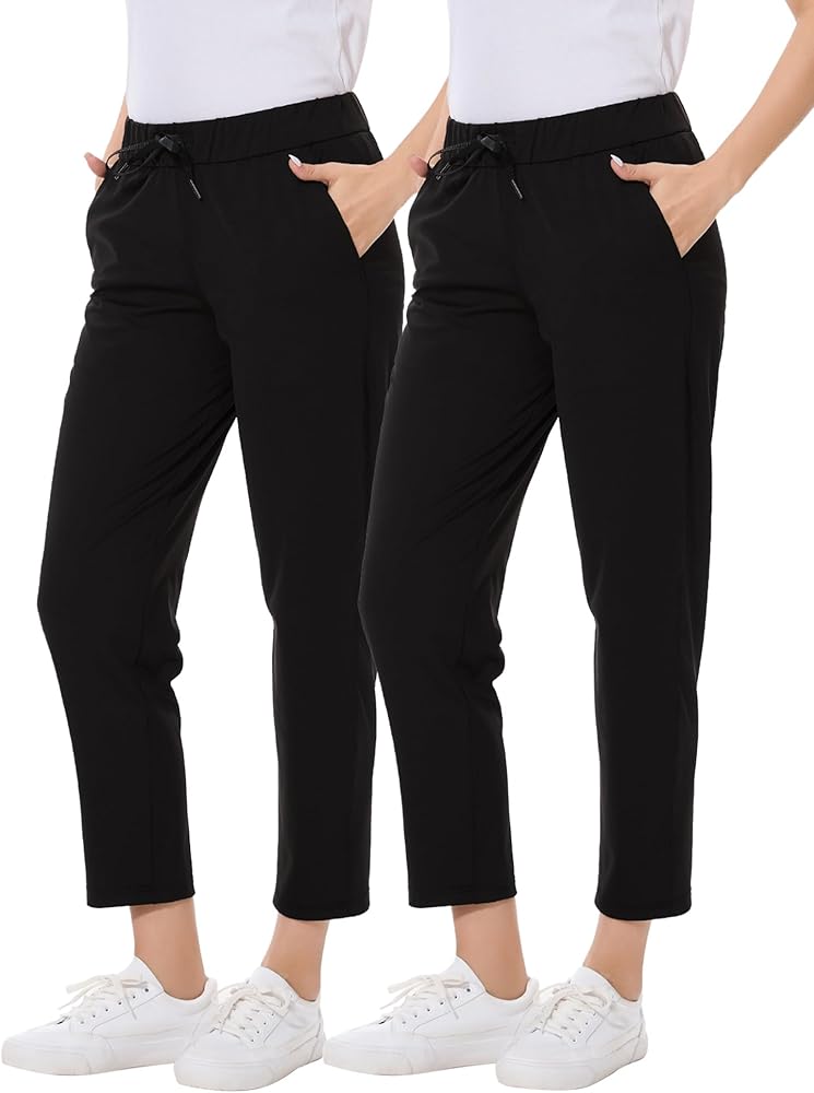 Comfort Fabric: These women's casual pants made from 82.5% polyester, 17.5% spandex fabric, it's ultra soft, 4-way stretch and moderately thick, drawsting and elastic waistband design provides comfort and fitted wearing experience