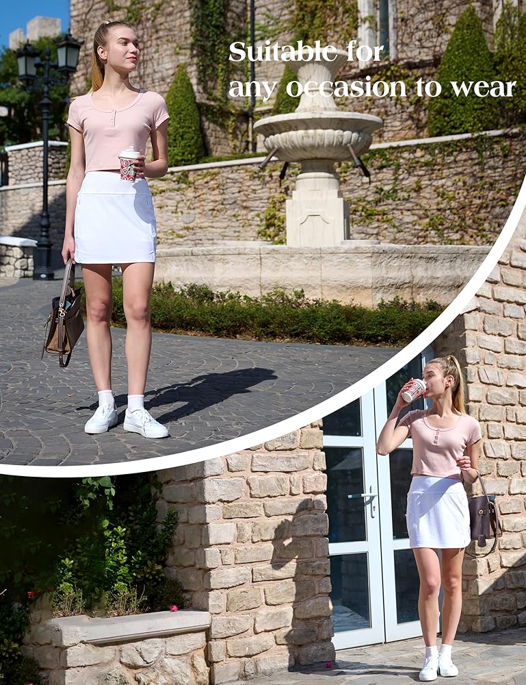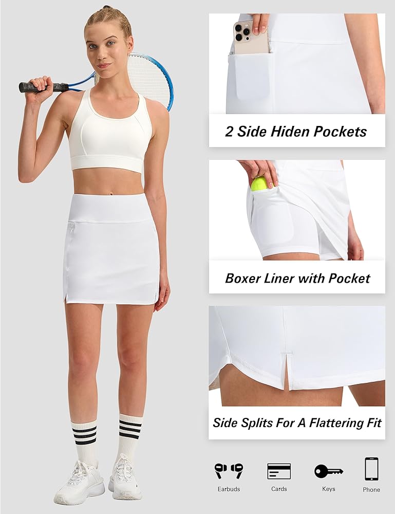 Multiple Pockets: Includes two external zipper pockets on the skirt and two internal pockets on the shorts, providing convenient storage for your phone, cards, or keys—freeing your hands during workouts