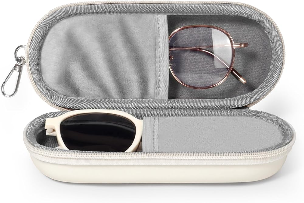 Hard Case with Zipper: With the double protection of hard case and zipper, no worry about your glasses getting crushed or falling out. It won't get scratched or stained easily.