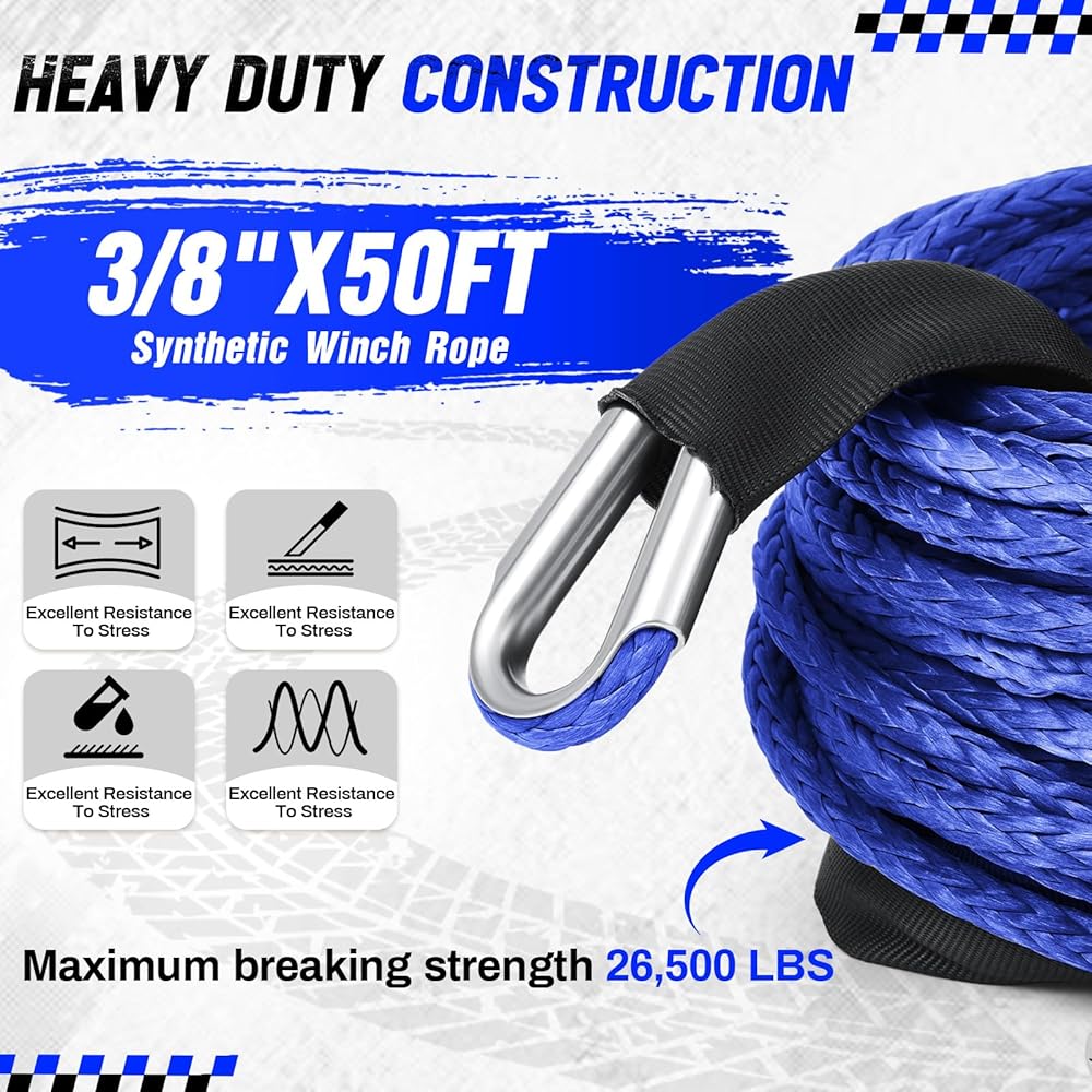 This winch rope 3/8 is ideally suited for a variety of situations, including vehicle towing, rescues, off-road adventures, roadside emergencies, and more. Its impeccable safety performance ensures reliability on rough terrains, roads, and with vehicles like motorcycles and boats.