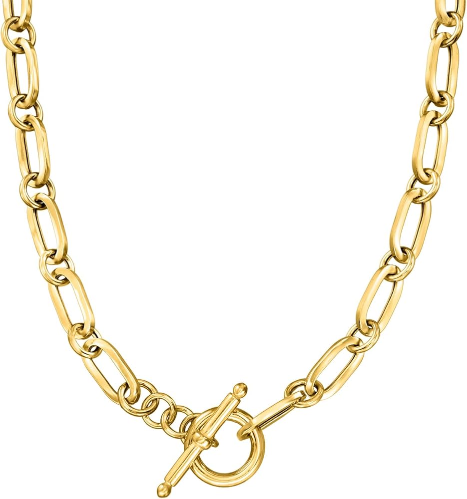 ITALIAN 18KT GOLD OVER STERLING — Italian 18kt yellow gold over sterling silver paper clip link necklace. Polished finish. 20 in. long. 1/4 in. wide. 15.2 grams. Toggle clasp.