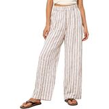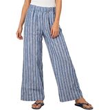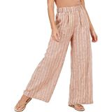- The linen summer pants feature a full elastic waistband, slant pockets, overall striped pattern, wide-leg, and relaxed fit