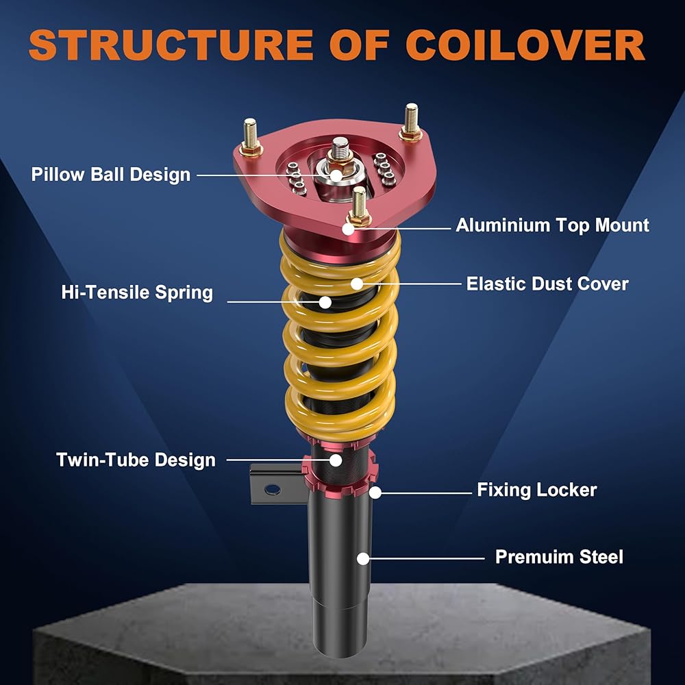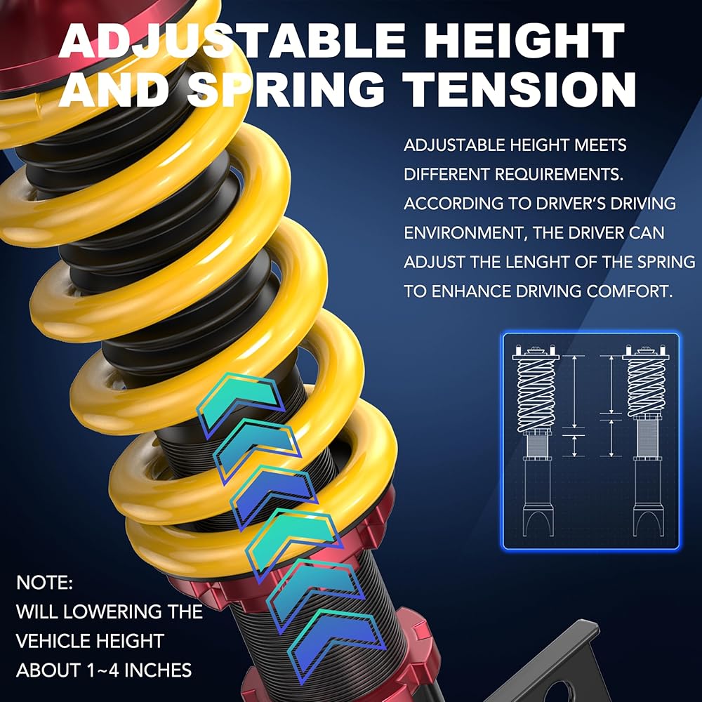 [ Package Include ] — 2x Front Coilovers + 2x Rear Coilovers + 2 Stainless Steel Wrenches. Installation Included, highly recommend professional installation.