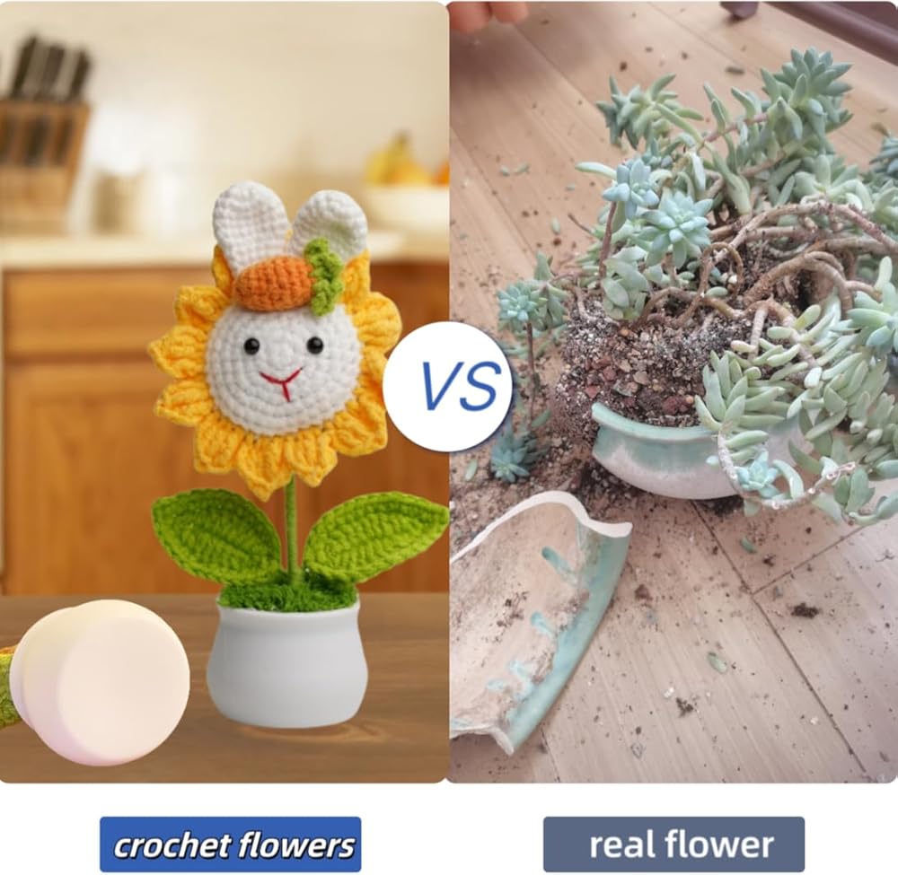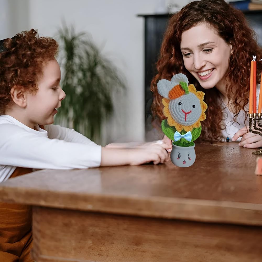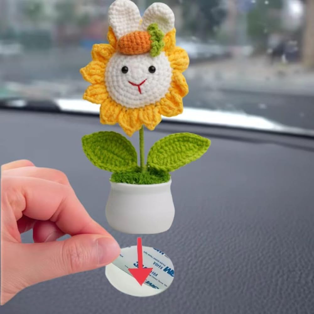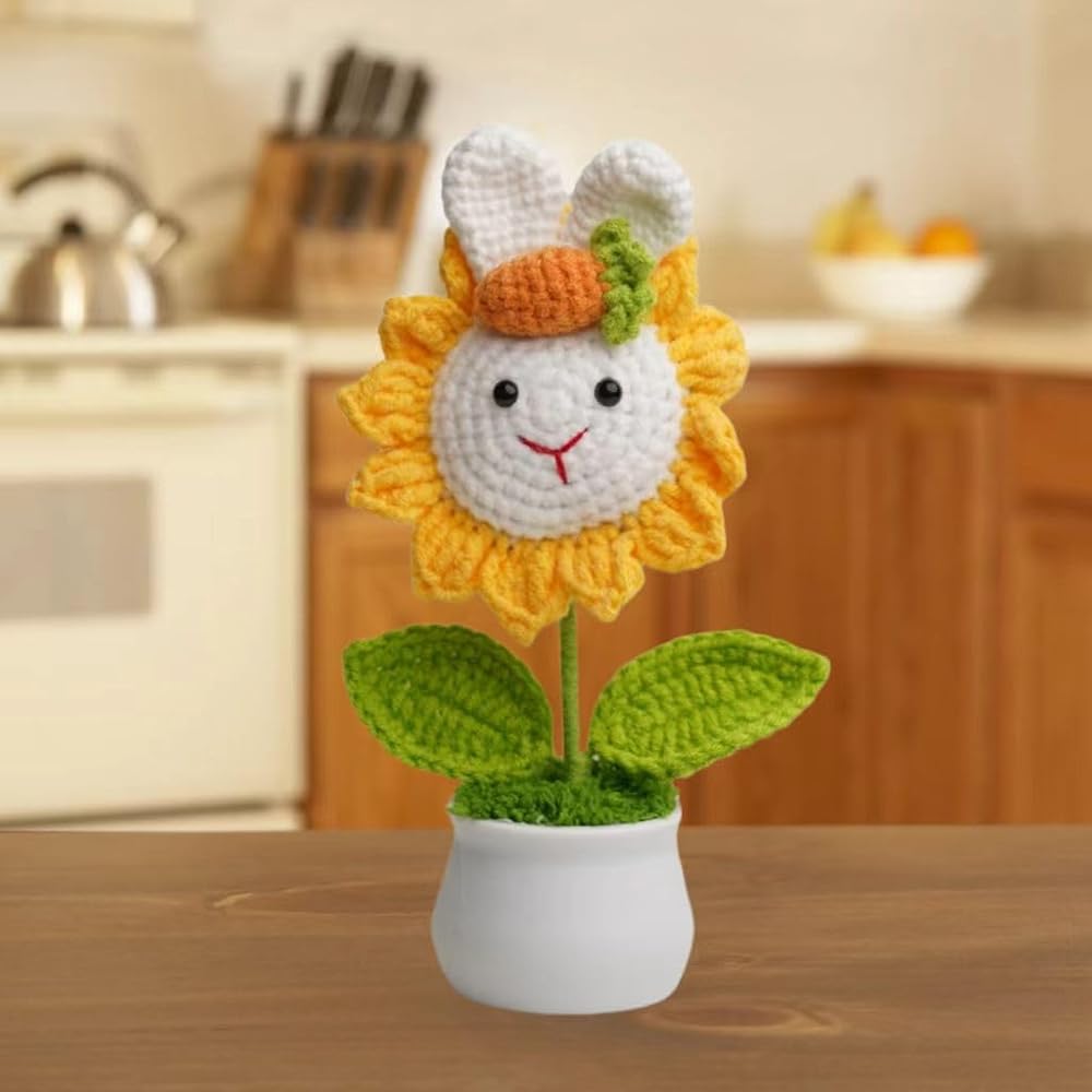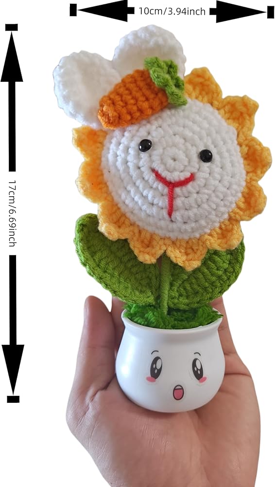 Transform your space with this ADORABLE handmade knitted sunflower planter! Crafted with love using premium eco-friendly yarns, this 3D plush flower features ADORABLE rabbit ears and a cute carrot accent that's guaranteed to spark JOY. Comes complete with: ✅ Premium 12-emotion sticker pack (24+ designs) - add daily personality! ✅ Heavy-duty 3M adhesive for worry-free decoration ✅ Lightweight durable plastic pot with moisture-control moss base ✅ Perfect for kids' rooms, home decor, gift-giving & gardening enthusiasts 🌟 Why You'll Love It: 👉 SOFT textured knitting creates irresistible tactile appeal 👉 MULTI-FUNCTIONAL design works as decorative planter OR standalone plush toy