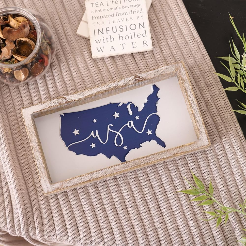 FESTWIND Farmhouse USA Map Wooden Sign, Patriotic 4th of July Decorations for Home, Rustic Fourth Of July Decor, July 4th Table Decorations for Mantel, Shelf, Americana USA decor