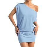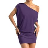 Feature: summer dress, asymmetrical dress, off the shoulder, bodycon dresses, hip-wrapped dress, short sleeve, mini dress, short dress for women, womens dresses, flattering dresses to hide tummy, fashionable