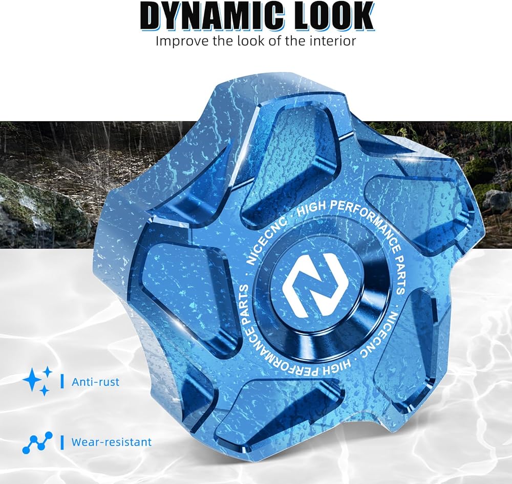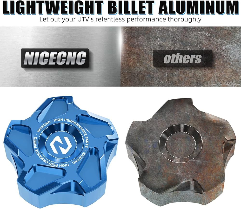 NICECNC RZR Aluminum Fuel Tank Cap Fuel Gas Cap Compatible with Polaris XP 4 2013-2018, Scrambler XP 1000 2016-2021, Sportsman Touring 570 2014-2017, See Fitments Blue