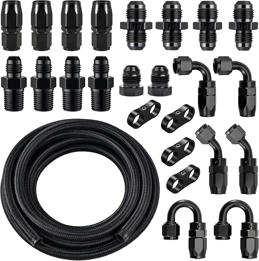[Compatibility] Nylon and stainless steel braided fuel hose kit can be compatible with transmission fluid, oil, race gas, and fuel, etc.