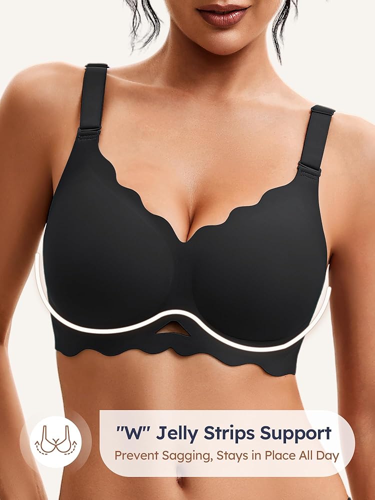 360° Soft Support: Featuring W-shaped and side jelly strips, this no wire bra eliminates underwires for cloud-like comfort and a natural lift. Perfect t-shirt bra for all-day wear