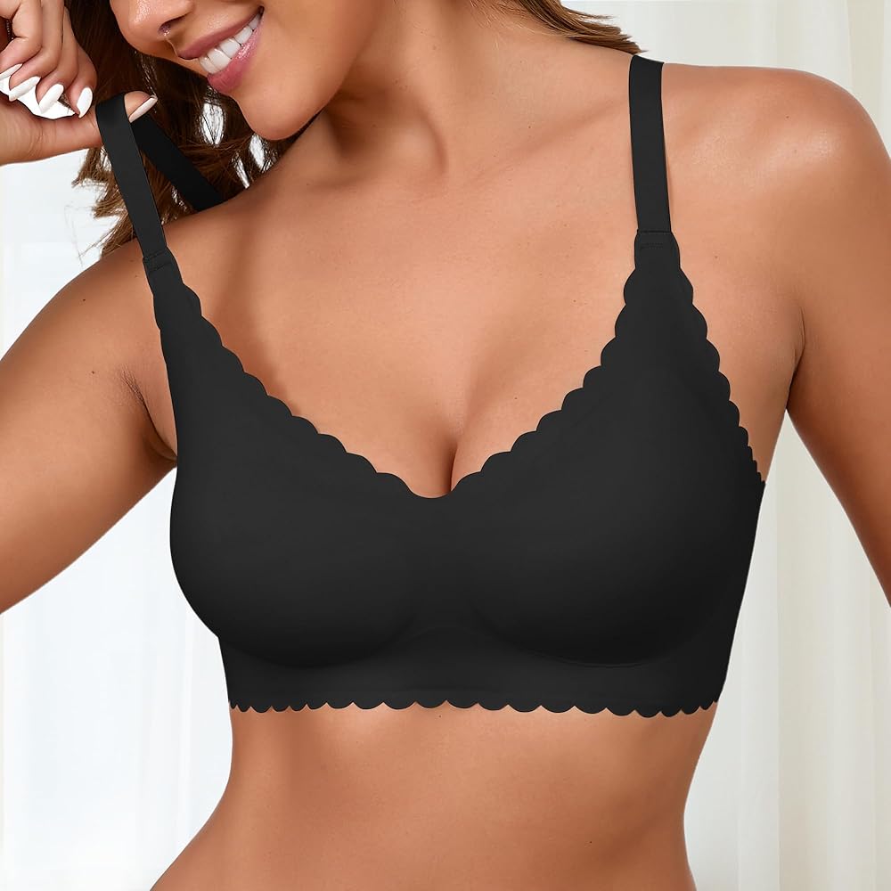 Soft Breathable Fabric – Designed for stay-put support and coverage, this 3-pack set of wireless push-up stretch t shirt minimizer bras for older women offers secure fit with soft touch. Unlike bulky back fat plus size bras for women or daily tight sport nursing posture full figure heavy bras, these non removable cool body comfy scalloped bras with sewn pads keep shape and minimize shifting. Perfect for sagging breasts, teens or elderly ladies, this breathable bra pack brings reliable comfort.