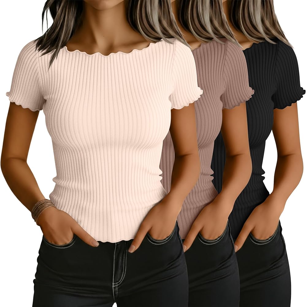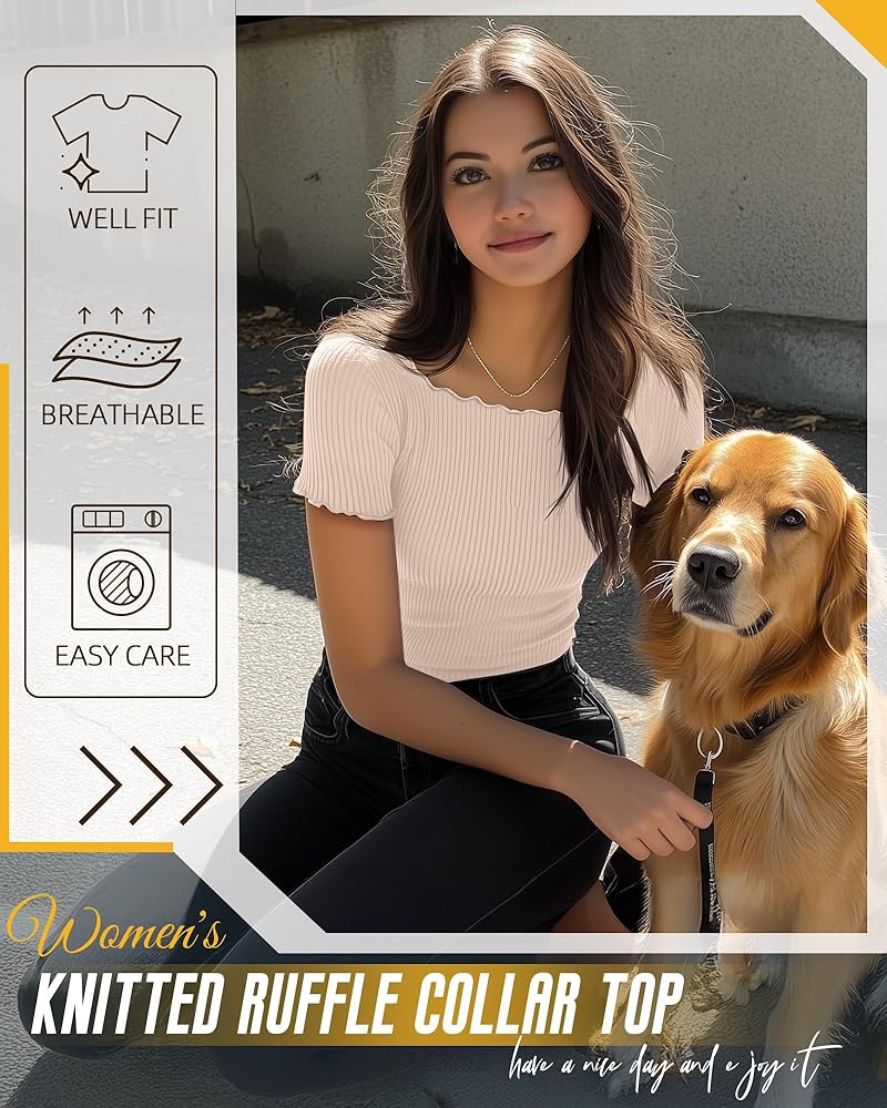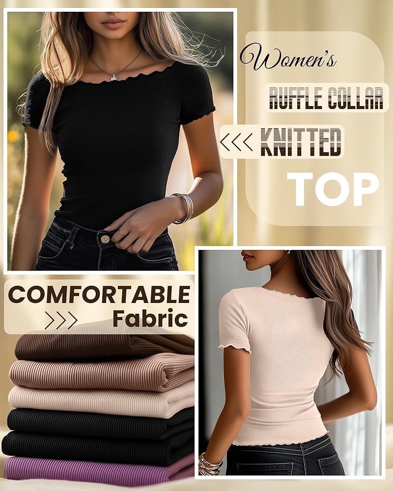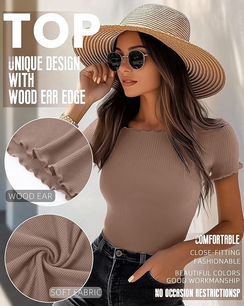 Boat Neck Features: these boat neck tops feature a slim-fitted, and casual style with a boat neck, short sleeves, solid color, and lettuce trim detailing on the neckline sleeves and hem adding to your trendy, making a stylish statement on any occasion