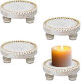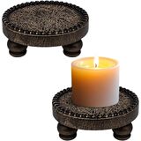 [RUSTIC CANDLE HOLDER] The farmhouse candle holders feature tray a lightweight and compact design with side bead decorations, creating a sophisticated and classic taste of elegance. Place your favorite pillar candles and display pieces on the round wooden riser, And the classic country style wooden candle holders will become an elegant tabletop decoration.