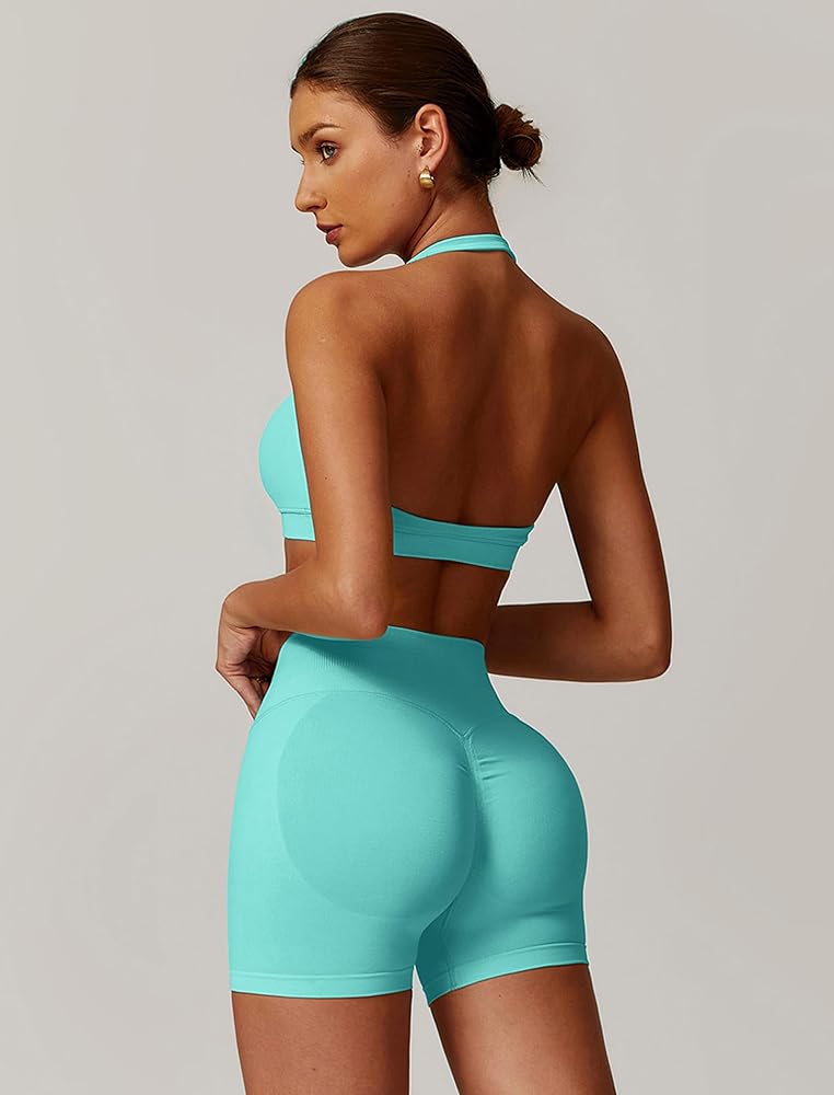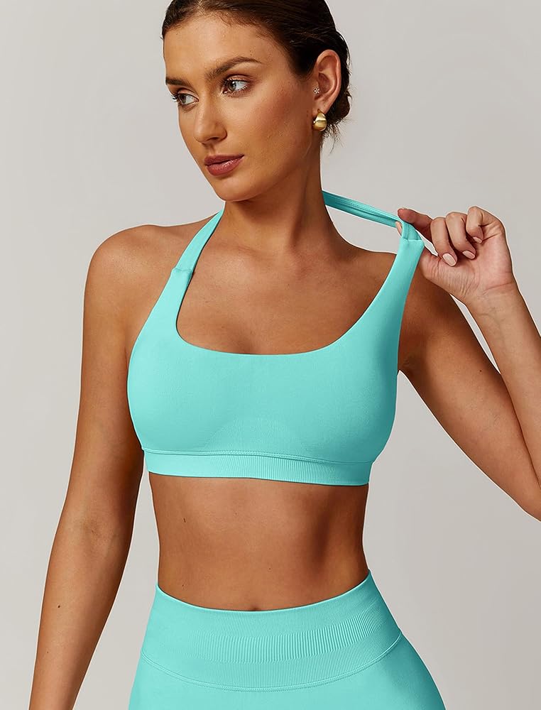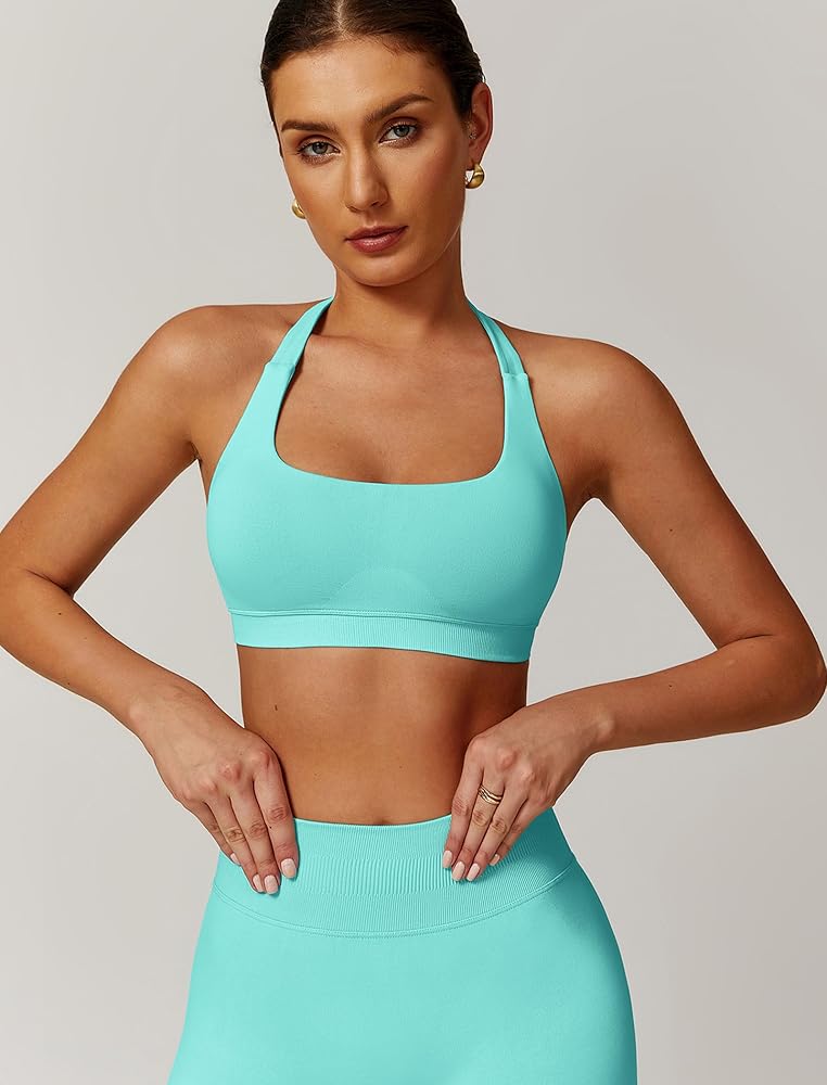 Open Backless One Shoulder halter sports bra Material: Our running Cutout Seamless halter sports bras for women made from breathable and moisture-wicking materials that help keep you cool and dry during intense workouts. The sport bra back workout tops for women fabric allows for proper airflow, open back sports bra halter yoga bras with removable pads preventing discomfort and reducing the chance of chafing.
