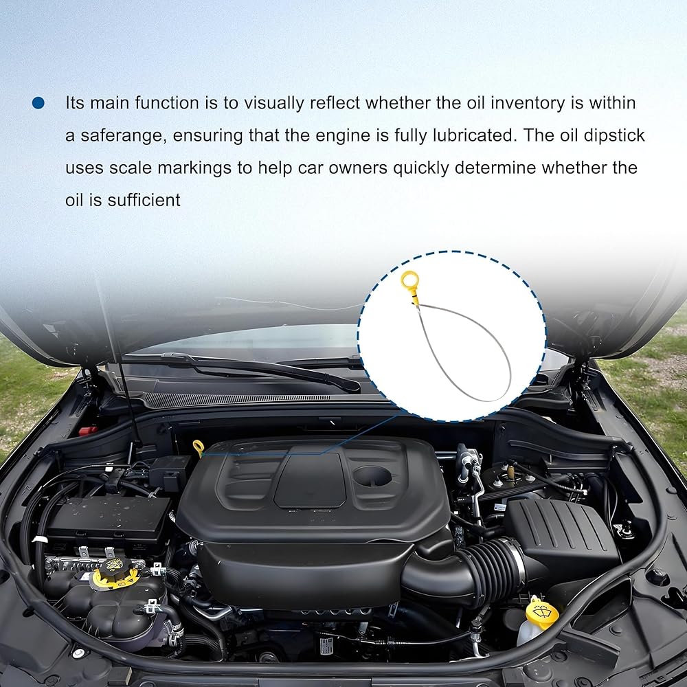 【Function】The engine oil dipstick accurately detects the oil level, which helps to avoid mechanical damage caused by insufficient oil. It is convenient to check the fuel level status at any time, so as to maintain it in a timely manner and ensure the normal operation of the engine