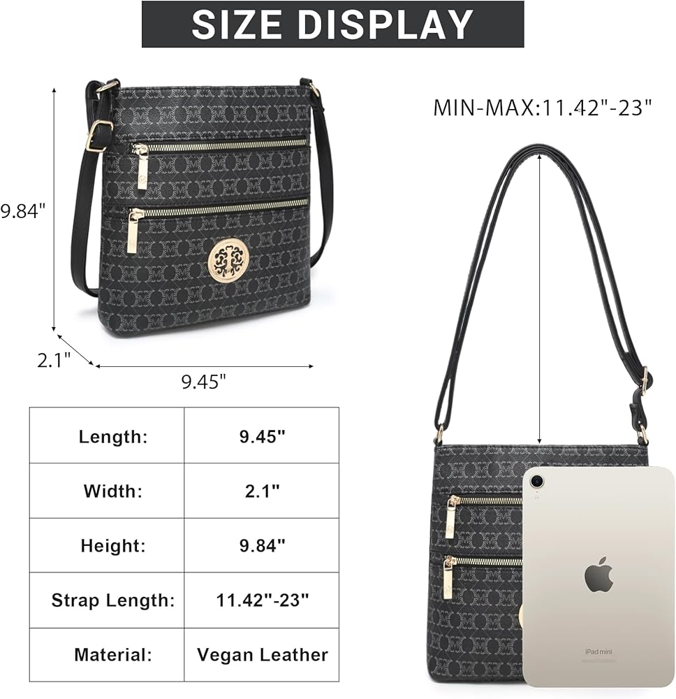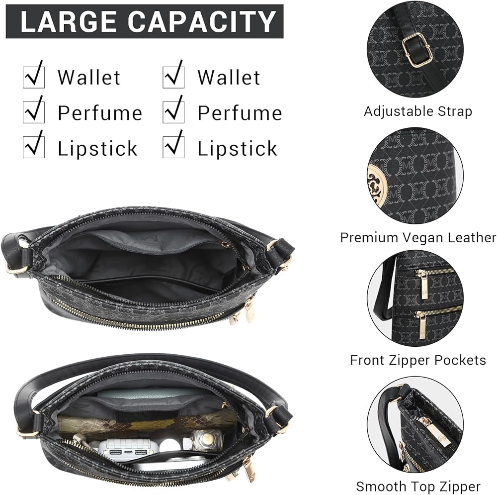 【STYLISH & PRACTICAL DESIGN】Blending fashion with functionality, this women's crossbody purse features a sleek and modern design that complements any outfit. The elegant monogram pattern and stylish color combination make it unique and exquisite, while the adjustable shoulder strap (11.42" – 23") adds versatility, allowing you to customize the fit for maximum comfort.This bag offers a perfect balance of style and practicality, making it an essential accessory for any wardrobe.