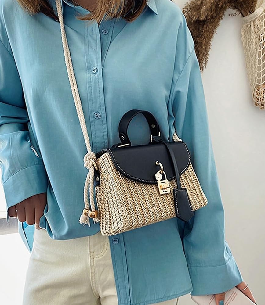 Design: The square design, retro straw woven style and classic color ensure you more impressive. The wicker bag with an adjustable cotton rope and a leather handle can be carried by hand, under your arm or cross your body.