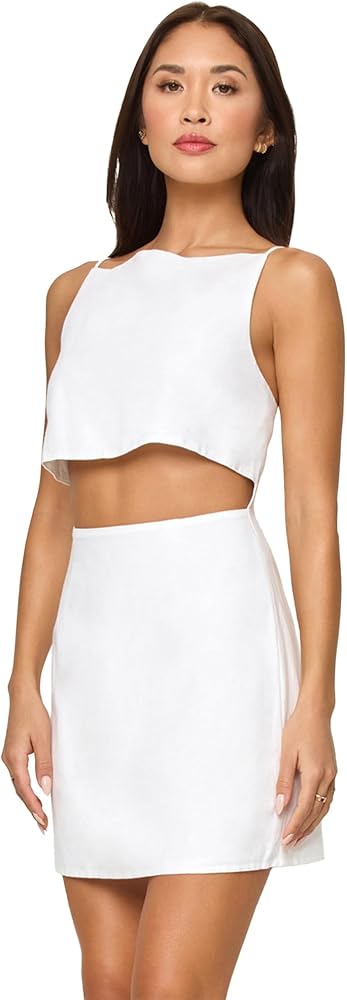 Don't let your eyes deceive you...The Raquel is playing some tricks. This mini gives the illusion of a two piece set from the front, but turnaround, and you'll see it's a fully connected dress. The cut-out under the bust combines with a zipper in the back to form a fully functional dress. Looking for even more? Throw on a chunky sweater and it's bringing all the mini skirt vibes.