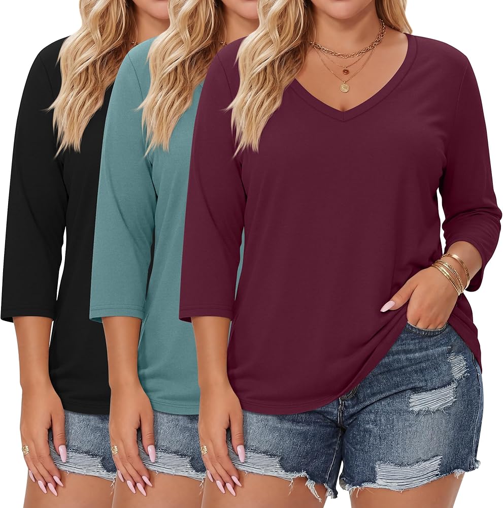 If you're looking for a loose-fit elbow-length top for women, our 3 Pieces, v neck shirt, 3/4 sleeves large size top, solid color, casual, cute, comfortable to wear, is an ideal choice