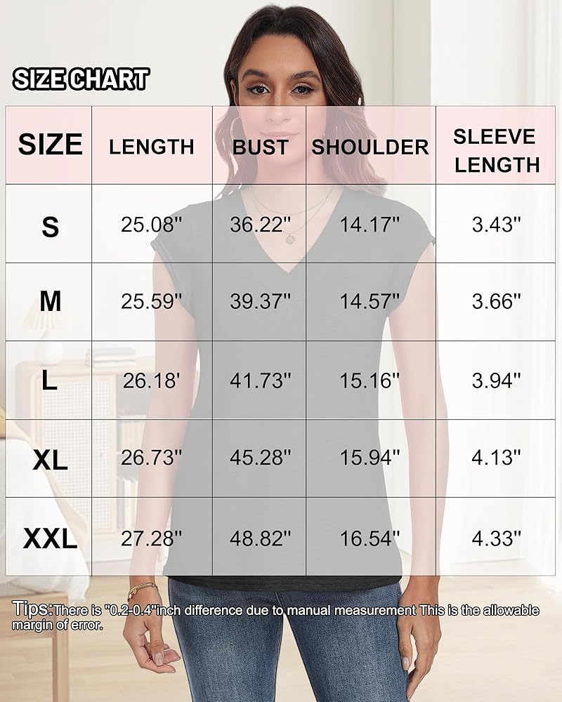 V-Neck Cap Sleeves Design : 2025 tshirts shirts for women, women's tees and tanks chic v neckline and delicate cap sleeve adds a touch of fashion,comfort and style,strechy fabric,solid color short sleeve tops,loose fit,comfy,casual style;suitable for spring,summer