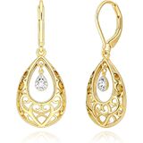 18K Gold Plated Caged Pearl Dangle Drop Earrings for Women Lightweight Leverback Dangling Teardrop Earrings Minimalist Jewelry for Women, Anniversaries, Birthdays, Everyday Wear