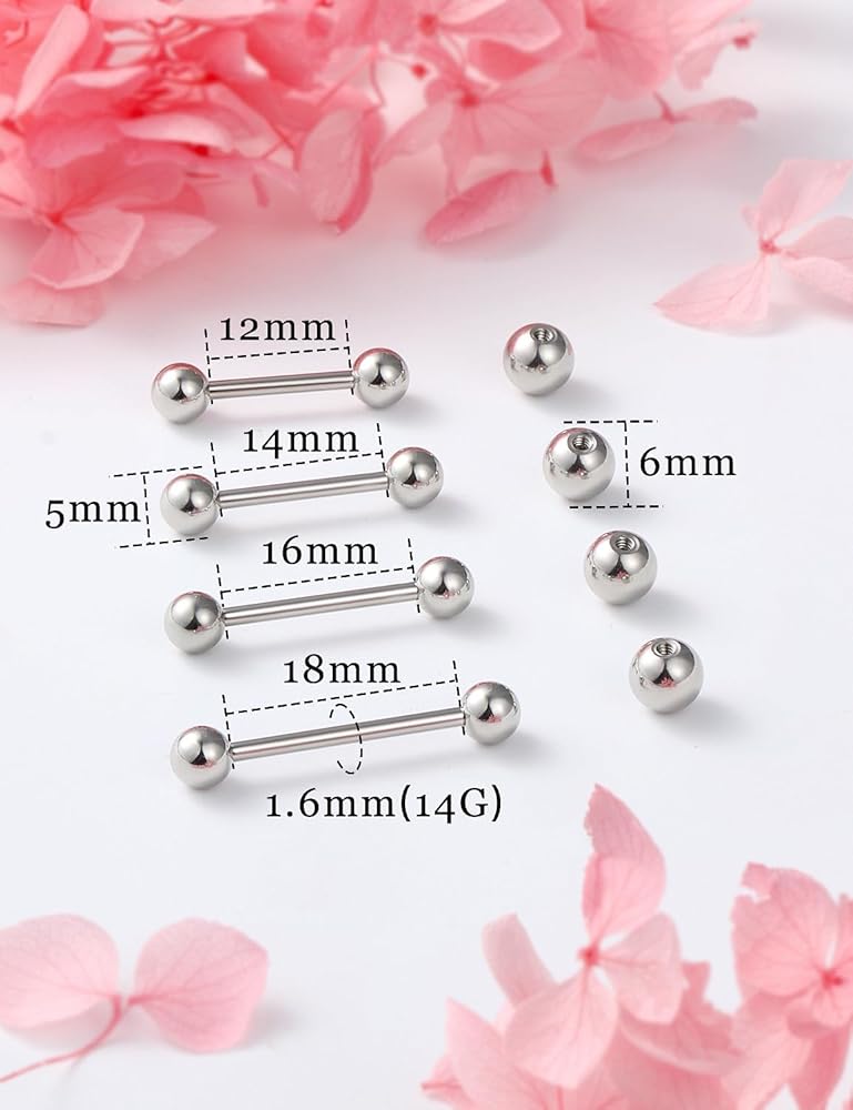 Versatile Tongue & Nipple Rings: Ideal for multiple piercings in a value pack of 4Pairs Barbell Rings and 8pcs balls. Never fear losing a ball again! Our interchangeable accessories keep you stylish.