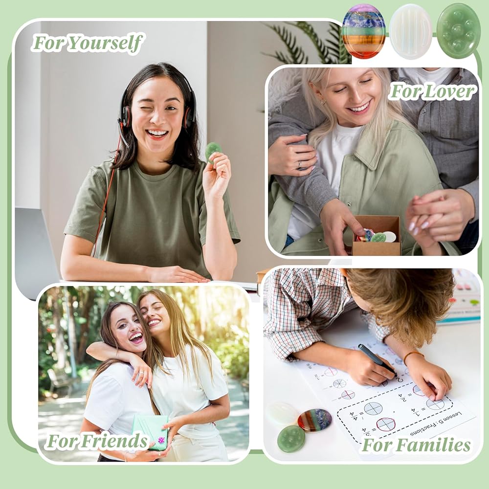Notes:Each stone is individually packaged, thoughtfully protecting your gift. High-Quality Crystals:You will receive 3 pieces of thumb worry stones,including pink crystal,rainbow and green aventurine stones.These healing stones are hand-polished for a smooth and soothing touch. Ideal for palm stones, thumb stones, and small worry stones, they're perfect for those seeking relief from anxiety and stress.