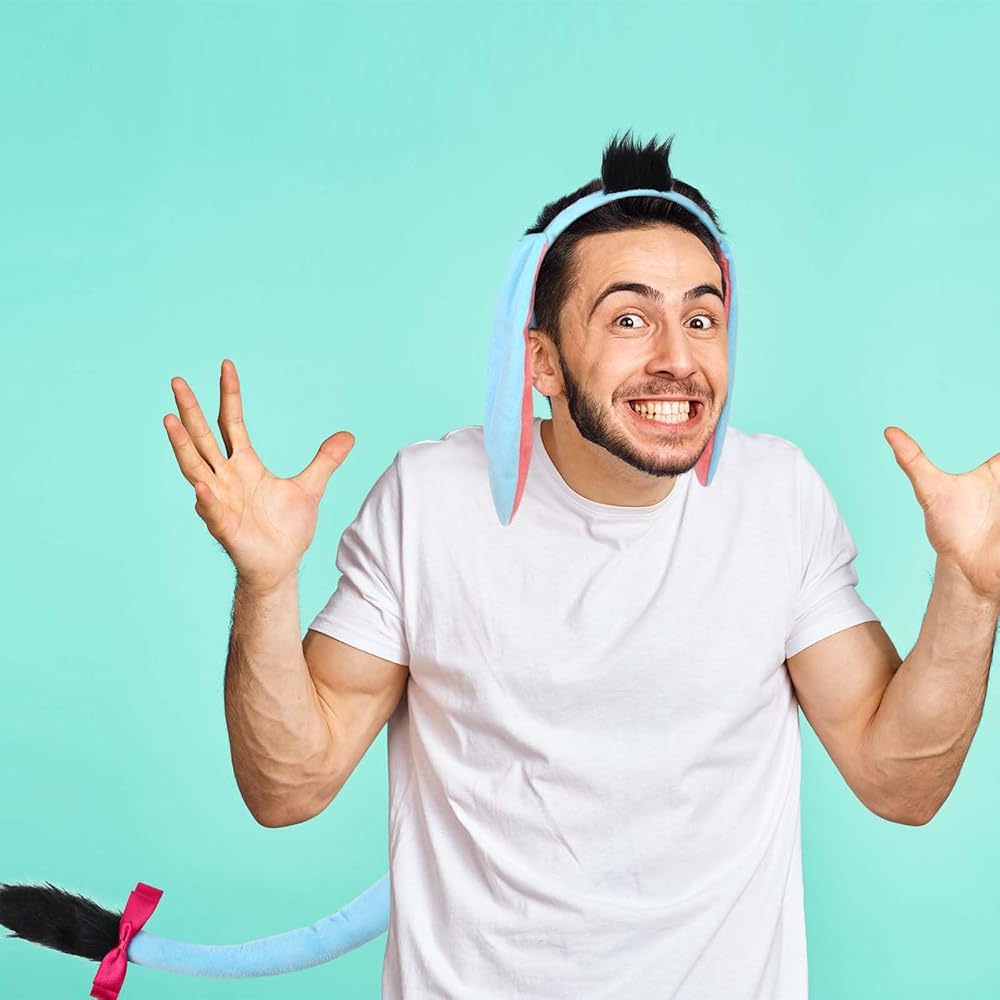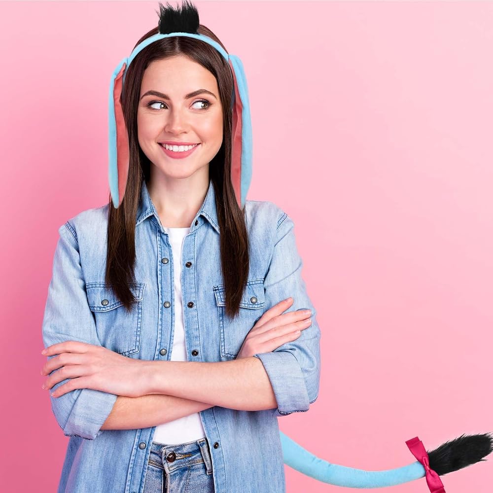 【Quality and reliable】 donkey ears headband and tail are made of soft fabric and a flexible hair hoop,soft and comfortable,secure and durable.