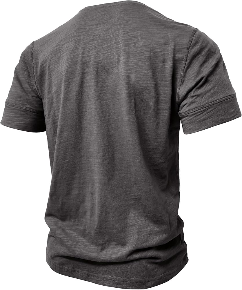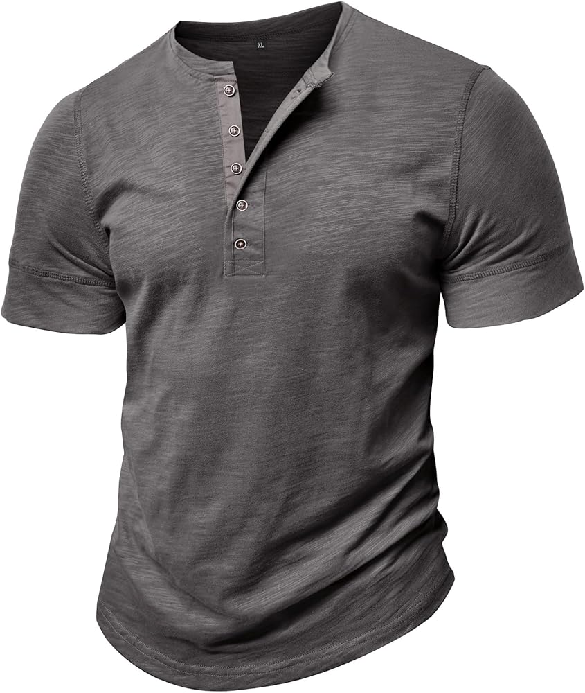 FEATURES:Sturdy stitching at the hem, shoulders and cuffs helps enhance durability, classic henley neckline, solid color, short sleeve,5 buttons create a round neck or v-neck style.