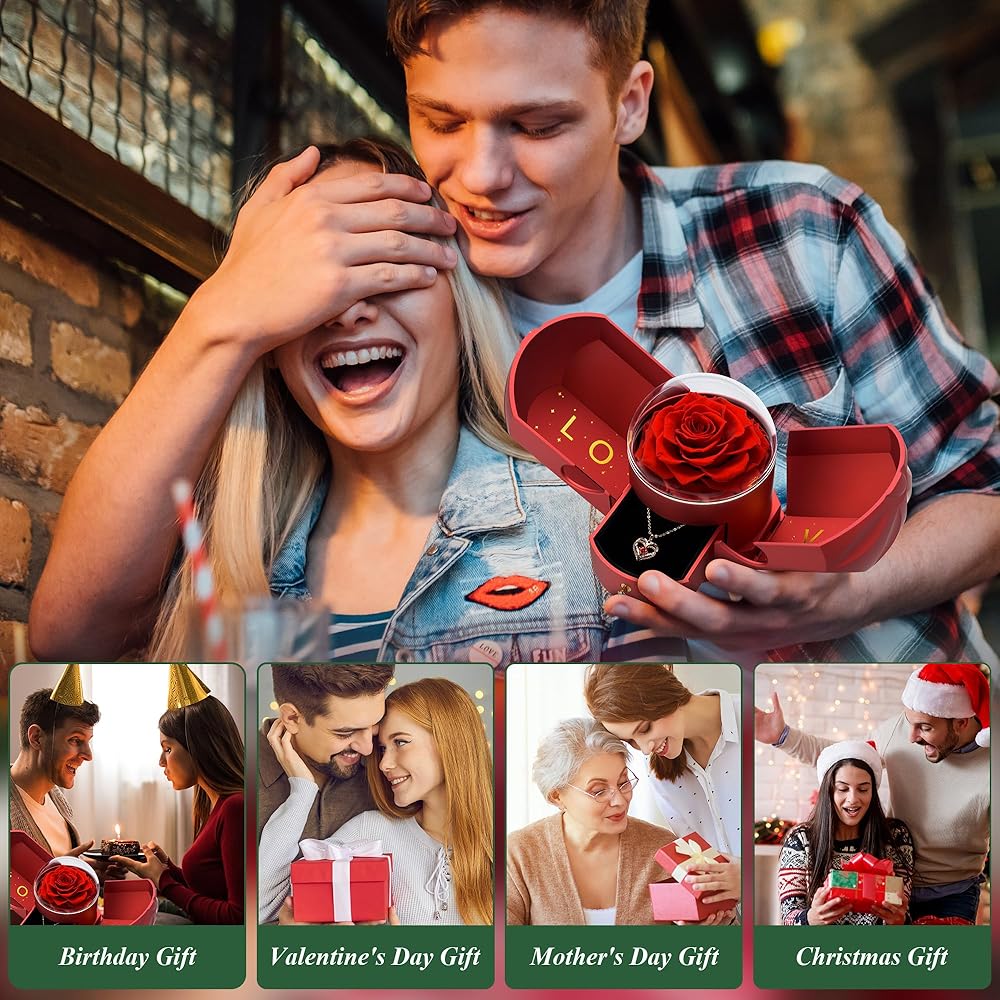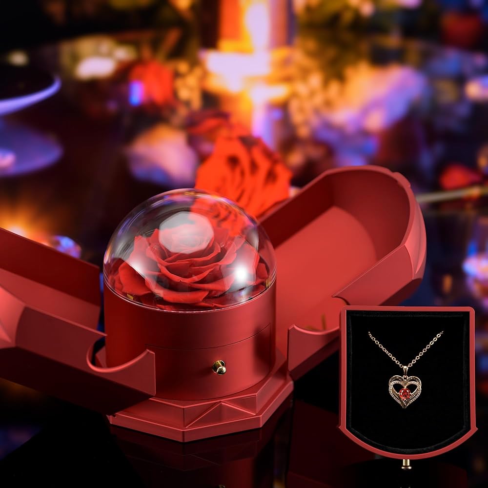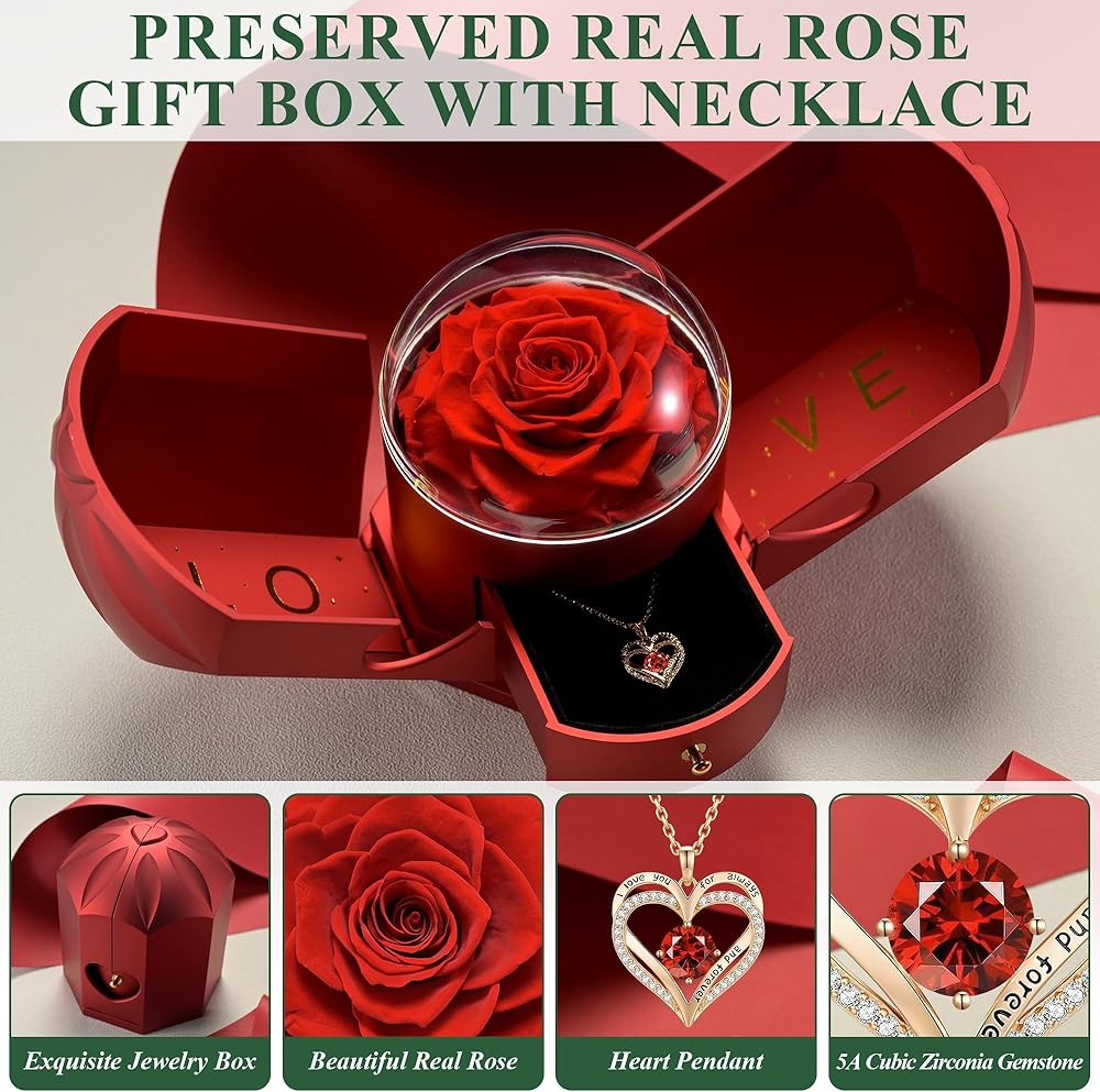 Timeless Keepsake with Lasting Beauty: Unlike fresh flowers, this preserved rose requires no watering or sunlight and can maintain its beauty for years. Paired with the meaningful necklace, it's a gift that serves as a lasting reminder of your love and care