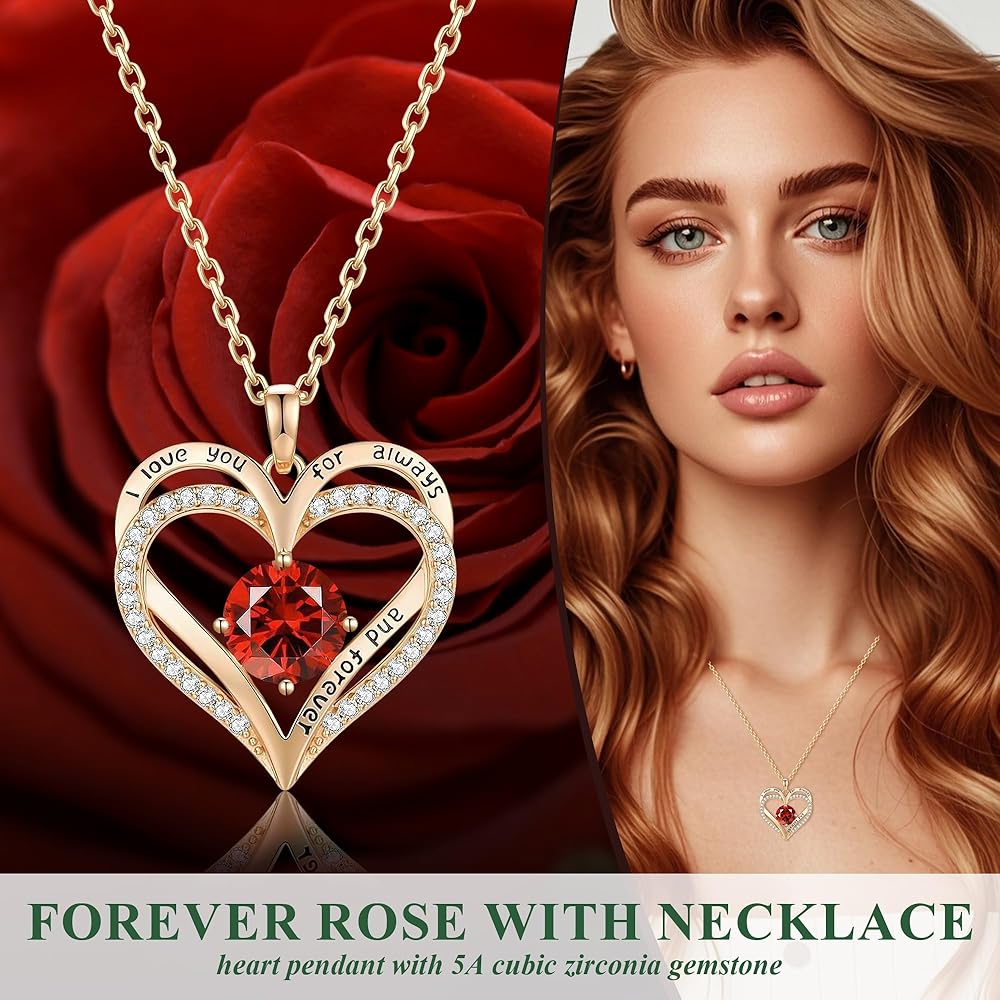 Elegant Heart-Shaped Necklace: The included necklace features a dazzling heart-shaped design adorned with a premium 5A cubic zirconia gemstone at its center. The pendant is inscribed with heartfelt words: "I love you for always and forever," adding a personal and sentimental touch