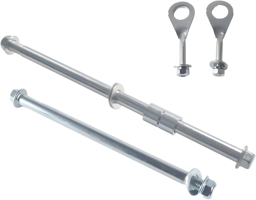 Package Include: 1 X 255mm Front Wheel Axle With Spacers; 1 X 330mm Back Wheel Axle With Spacers; 2 X 15mm Chain Adjusters