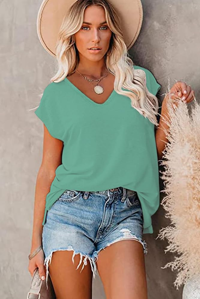 Suitable occasion :This women T-shirt is simple and fashionable design style with classic U-neck design makes it suitable for daily wear. party. office. school. vacation. travel. dating. work. family. outdoor activities such as running. hiking. camping. yoga. golf. tennis. volleyball. cycling. fitness. fishing. hiking. etc. Womens summer fashion 2024 v neck short sleeve T-shirt fitted for women comfortable wear for spring.summer.fall seasons