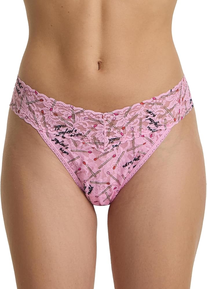 The Hanky Panky Signature Lace Printed Original Rise Thong (PR4811P) was created in NYC in 1986 and has been keeping people comfortable for decades with its ultra-soft stretch lace. This floral lace thong features a V-front and V-back design. The flexible lace stays in place without digging in, making this panty a sexy and comfortable thong for daily wear. Check out the printed version of this thong Hanky Panky Signature Lace Original Rise Thong (4811P) for a new take on this classic thong, sold separately.