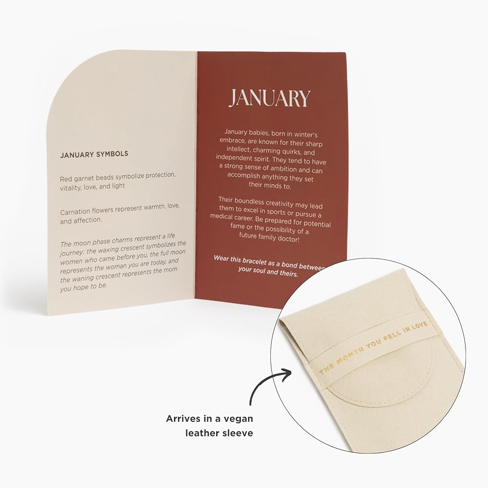Three Moon Phase Charms: A trio of gold-plated moon phase charms also adorn the bracelet. Moon charms represent the women who came before you, the woman you are right now, and the mom you strive to be