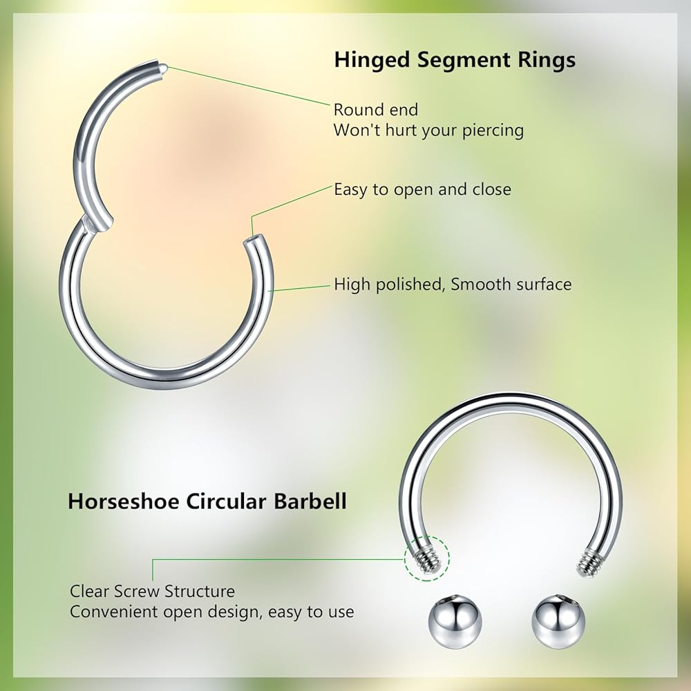 - Body Piercing Jewelry: This Septum Jewelry can be used for Nose Rings, Lip Rings Hoops, Cartilage Tragus Earrings Hoop, Eyebrow Hoop Ring.