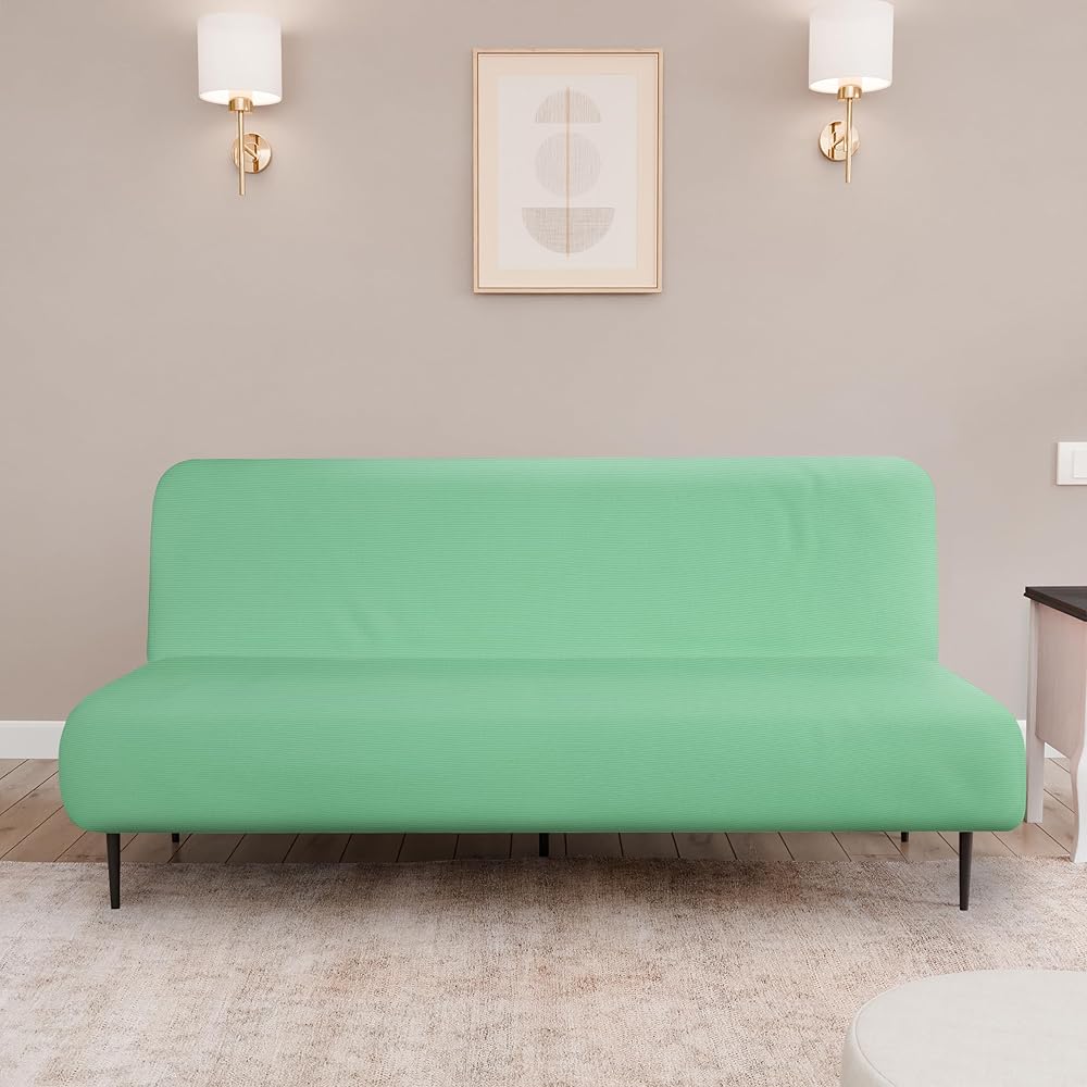 GREAT FIT: This innovated 1 Piece sofa couch cover is crafted from durable and soft high stretch knitted jacquard fabric. Futon slipcovers (fit sitting width between 70-75 inch). Feature one-size-fits-most, kindly measure before ordering