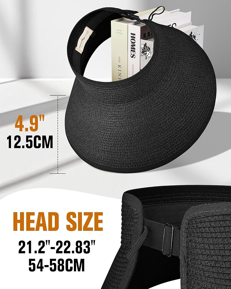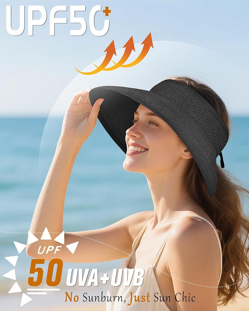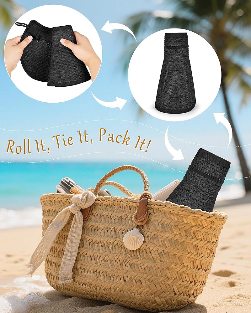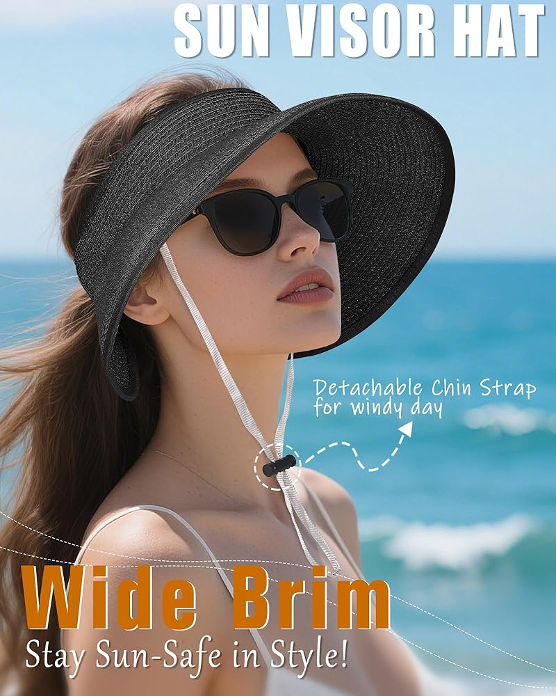 【Open Design & Windproof Strap】 This Summer sun hat is perfect for wearing with messy buns or ponytails, and the open design prevents overheating. The detachable windproof strap ensures the hat stays secure on windy days or during beach walks.
