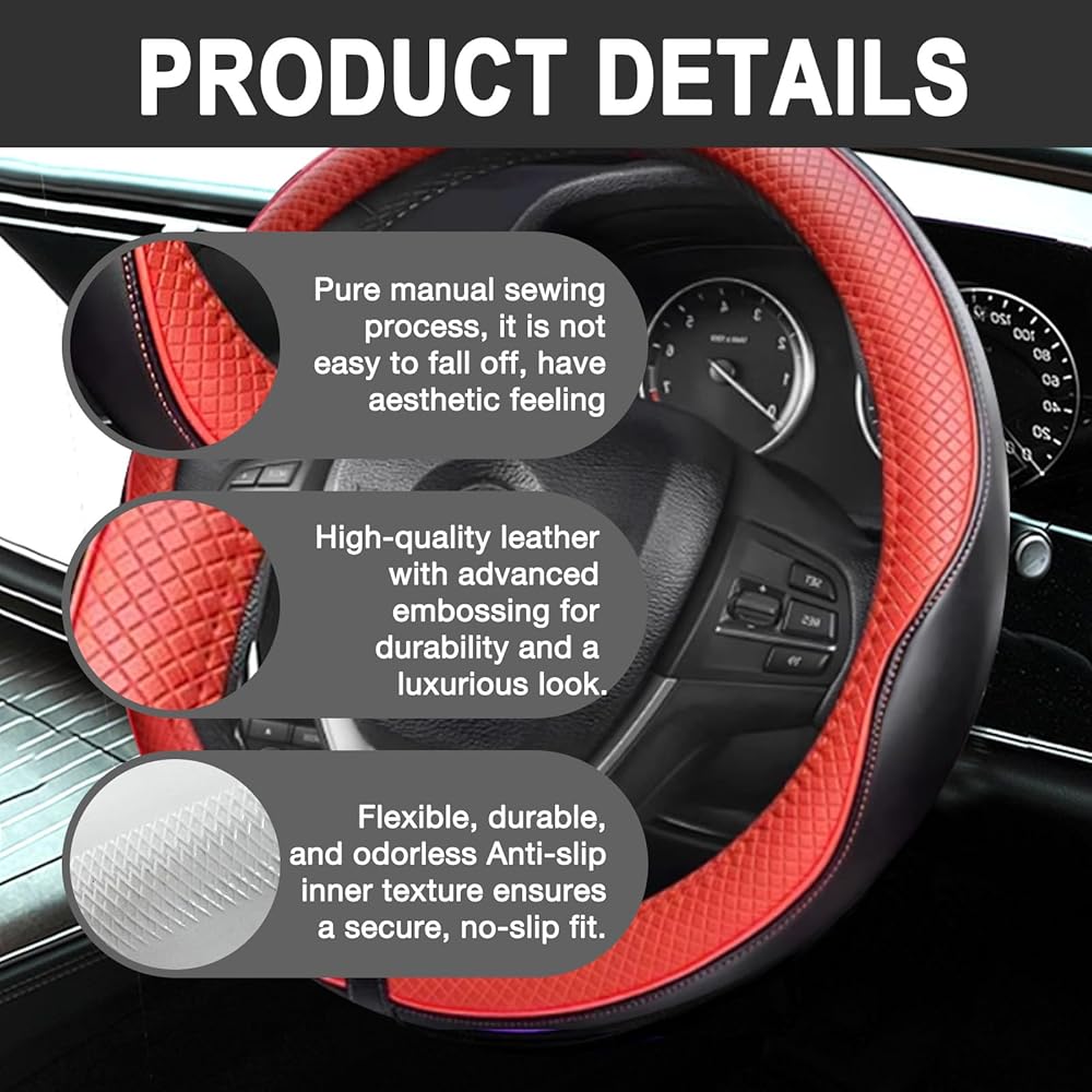 2. When the steering wheel cover is difficult to fix, ask another person to pull down to the appropriate position.