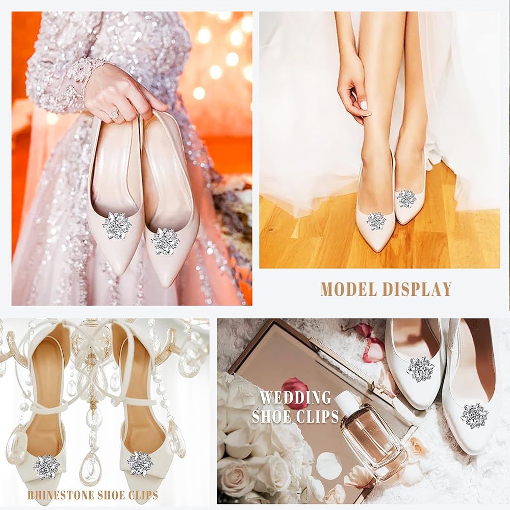 • If you want to add something to jazz up the chosen shoes for your big day, this crystal shoes decoration charms clip on easily and you can't feel them against your feet.