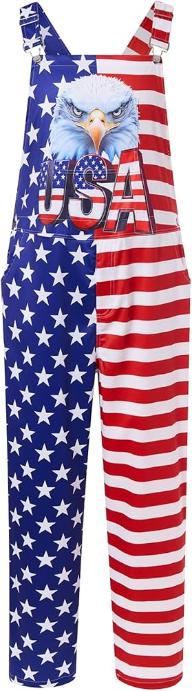 Men's Overalls: American flag overalls are designed with adjustable straps and zipper fly. metal button/shoulder strap adjustment ring, firm and not easy to rust