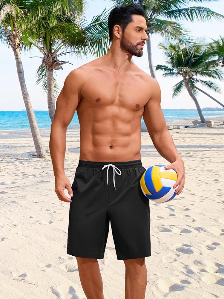 Board Shorts Men's Swimwear: Mens shorts 9 inch inseam offer a balanced length that provides coverage without restricting movement, ensuring comfort for various body types and solid color will never out of style. Casual black shorts men/ 2 in 1 mens khaki shorts/ grey dissolving swim trunks men/ Summer blue swim shorts men