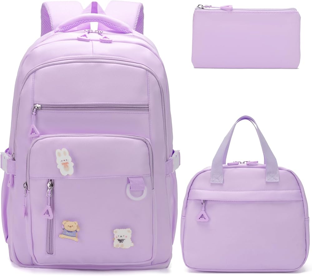 【Premium Quality】The girls backpack with lunch box for teen women made of water resistant and breathable material,which is lightweight and easy to clean.Very breathable, two padded shoulder straps and light to carry, forcibly reinforced to reduce shoulder pressure.
