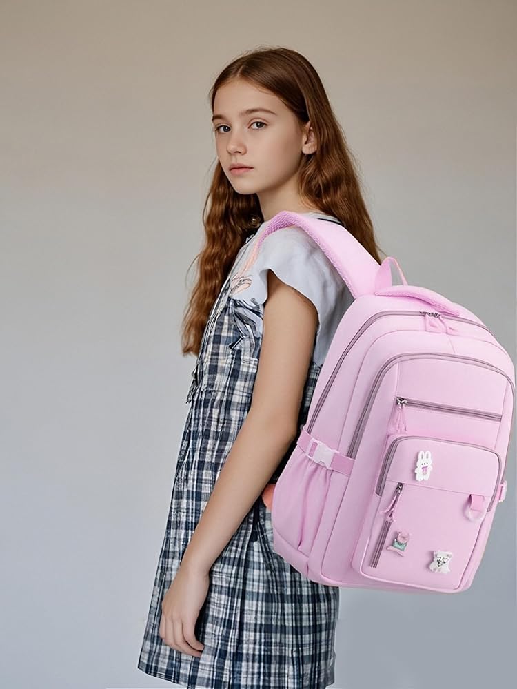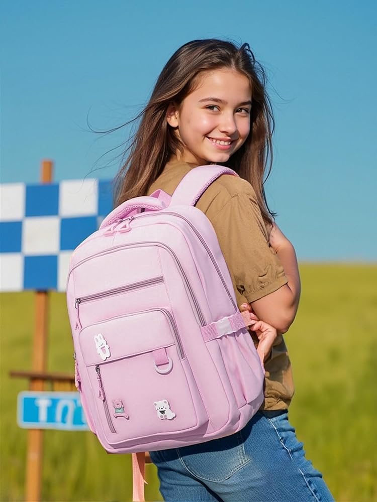 【Large capacity】This kid girls backpack size is 12*7.1*17.5 inch.This school backpack with padded compartment sleeve is fit for 15.6 inch laptop and big folders.The cute backpack suitable for college and high school students to use, work, and travel.