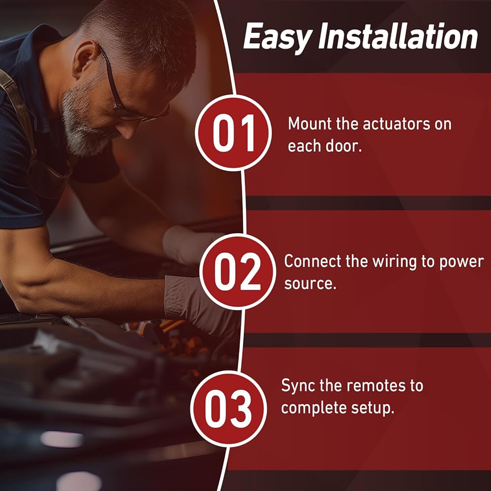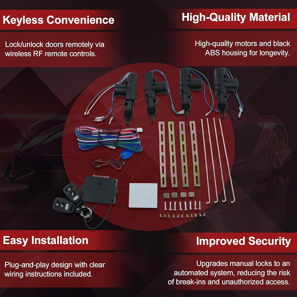 Effortless Remote Operation: With the included remote door lock controllers, you can easily lock and unlock your car doors from a distance. The keyless entry system ensures quick access to your vehicle, even in low-light conditions.