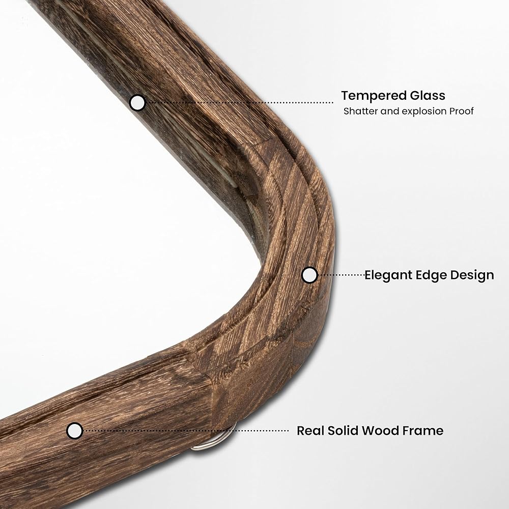 • High-Quality Solid Wood Frame: Crafted from premium solid wood, this mirror exudes quality and durability. The sturdy frame not only provides stability but also enhances the overall aesthetics, making it a standout piece in your home