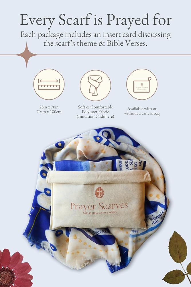 Find Serenity in Prayer: Experience the beauty and depth of faith with Prayer Scarves, thoughtfully designed with themed Bible verses. Each piece is crafted as an expression of worship, inspiring a closer connection with God.