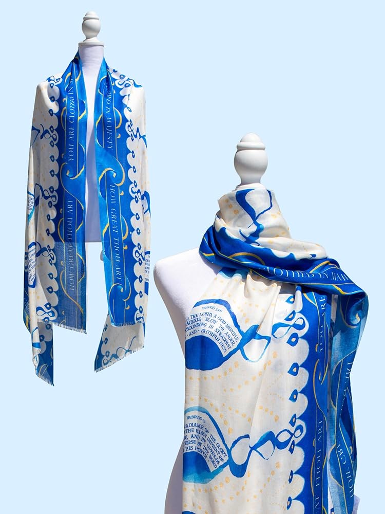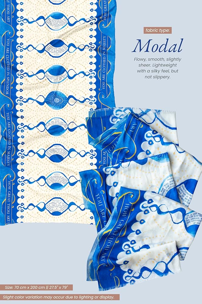 A Scarf for Every Moment: Use this prayer scarf for women Christian as a lap scarf for women church or daily accessory. Unlike rigid tallit scarves, it's light and thin made with Modal Matte fabric. Handwash, dry flat, and handle with care for lasting beauty. Available as a scarf only or with a canvas bag for easy storage.