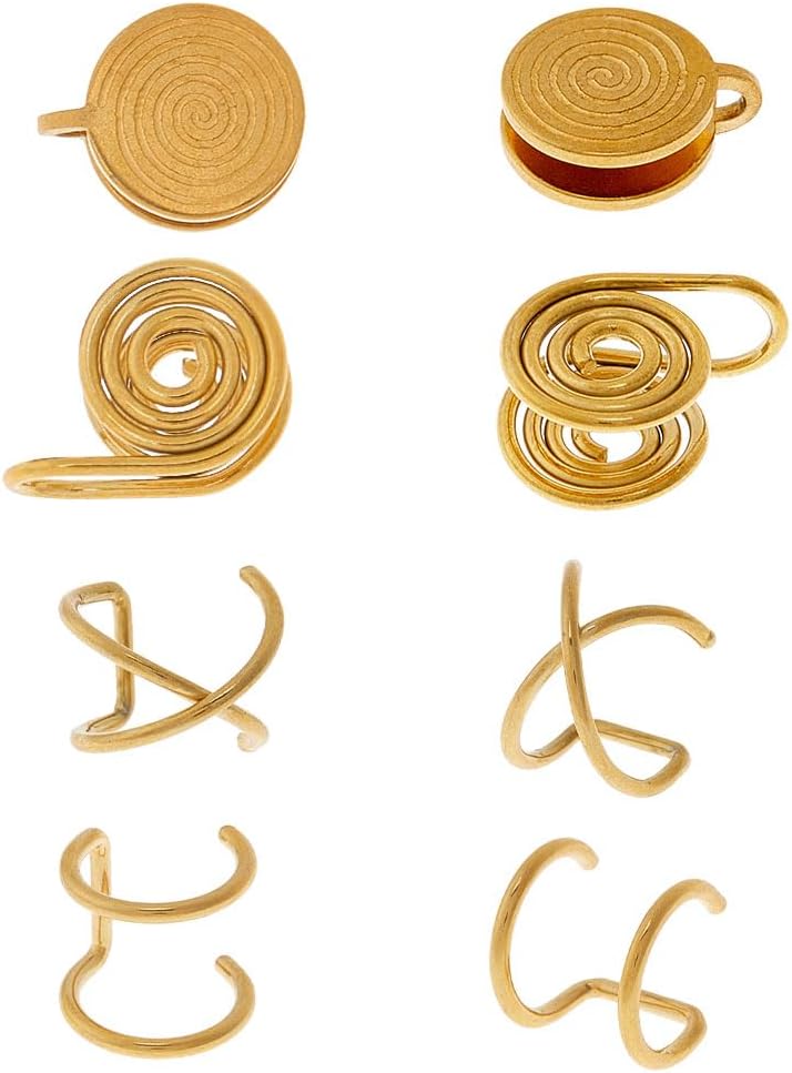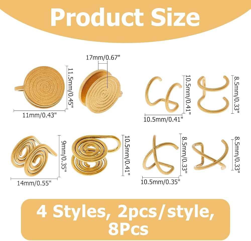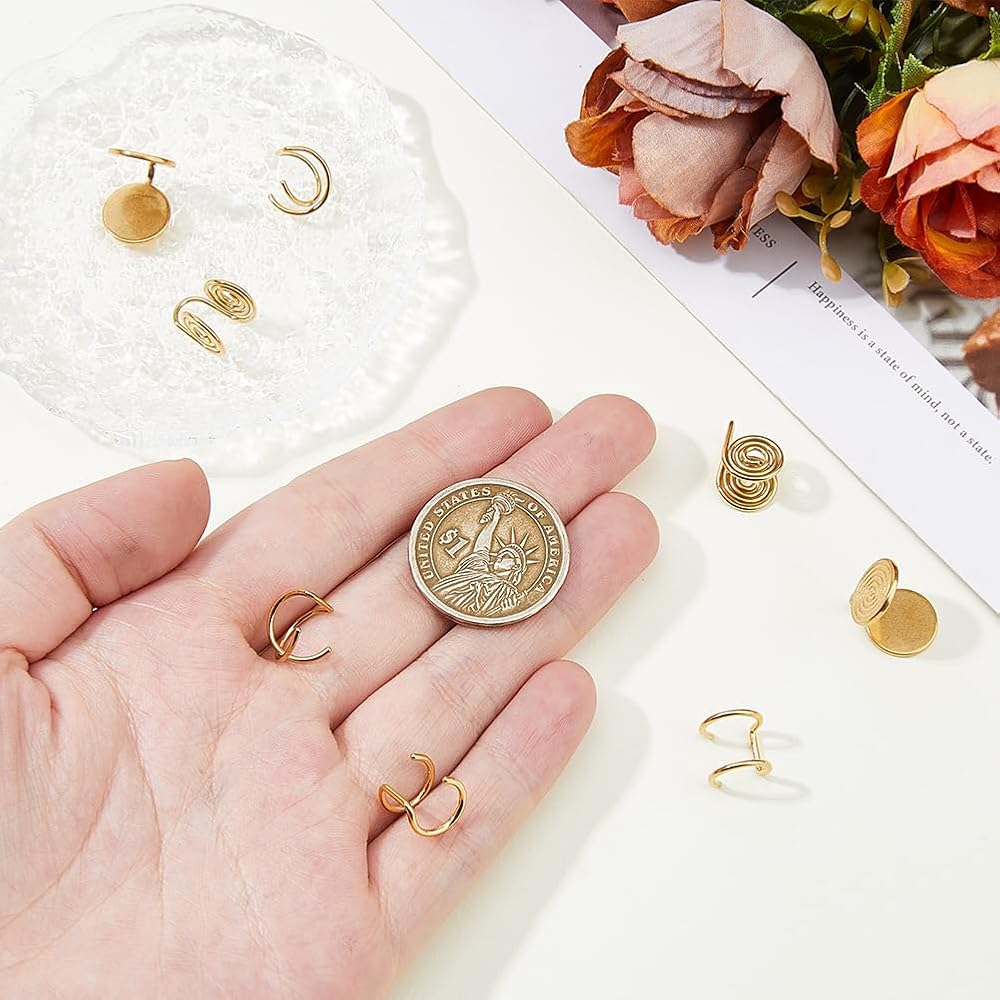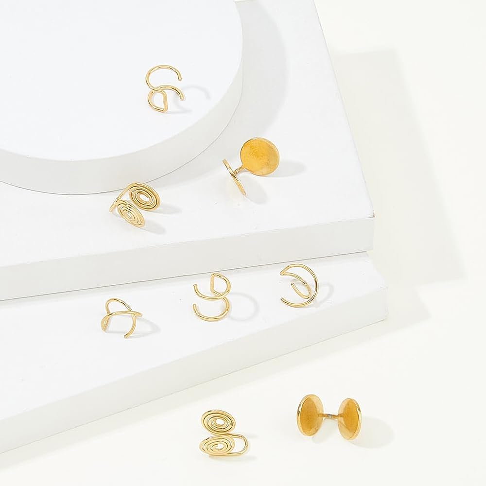 4 Styles: You will receive 4 styles of stainless steel color earrings, there are two styles of pressure earring and cuff earring, pressure earrings are designed in the shape of spiral mosquito coil, cuff earrings are simple design, can be used for different clothing and occasions.