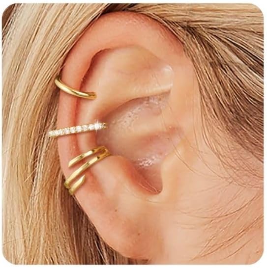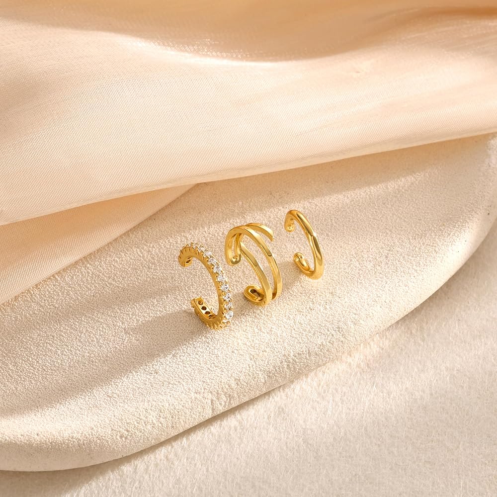 𝑯𝒚𝒑𝒐𝒂𝒍𝒍𝒆𝒓𝒈𝒆𝒏𝒊𝒄 𝑪𝒖𝒇𝒇 𝑬𝒂𝒓𝒓𝒊𝒏𝒈𝒔 𝑺𝒆𝒕: These no-piercing ear cuffs are made from 14K gold plated with a high-polish finish for lasting shine. They are nickel-free, lead-free, and hypoallergenic, ensuring they're gentle on your skin and won't turn it green.