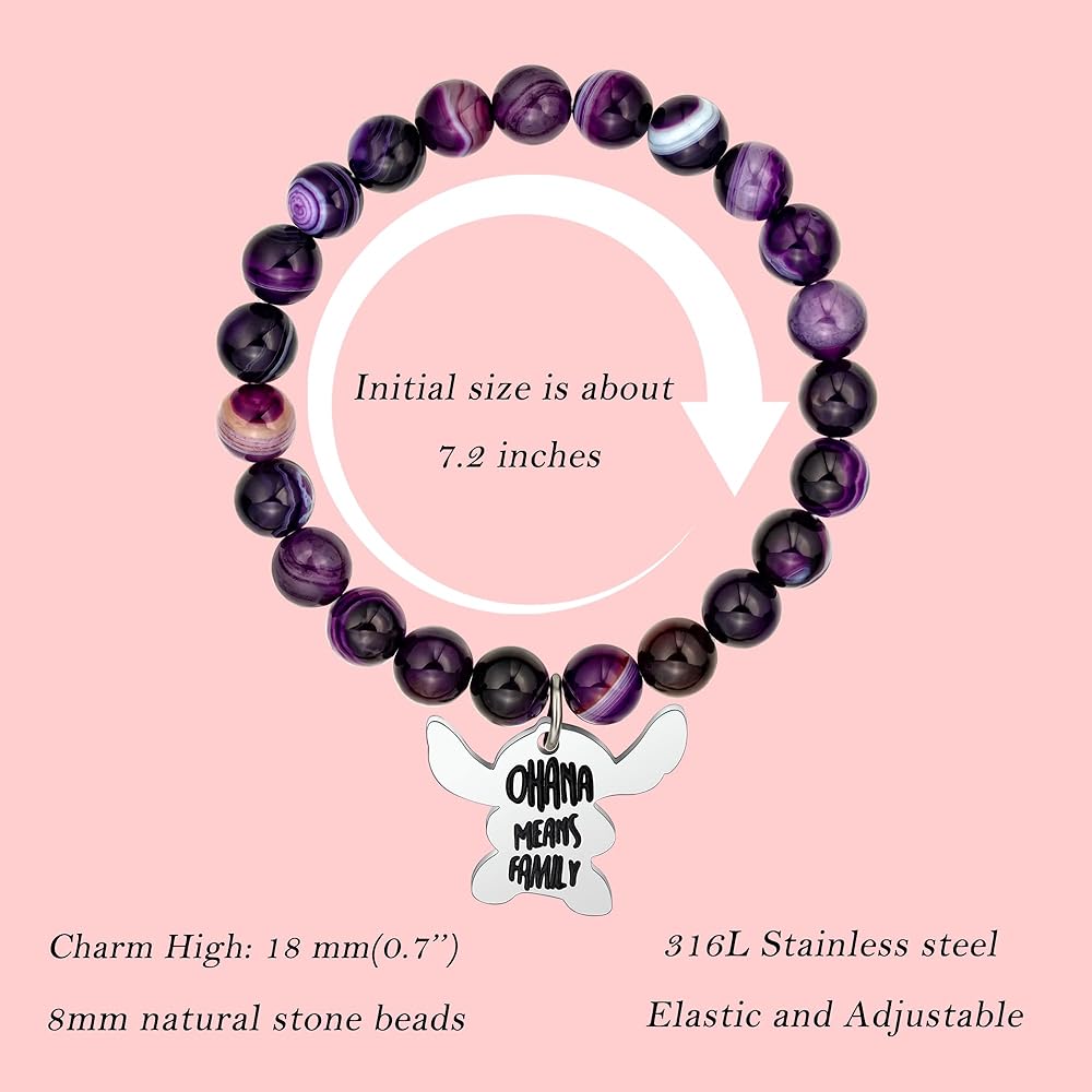 LINY Inspirational Gifts for Women, Natural Stone Beads Stretch Stitch Bracelet Charm Jewelry Ohana Means Family Gifts Stitch Stuff for Women Love, Mom, Daughter, Niece, Sister